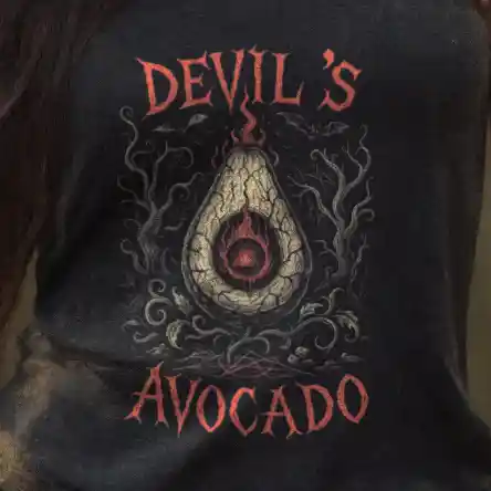 Der clevere Wortwitz „Devil’s Avocado“ (Anspielung auf „Devil’s Advocate“) sorgt dafür, dass dein Outfit auch inhaltlich überzeugt. Du zeigst mit einem Augenzwinkern, dass du Diskussionen mit Humor nimmst, während du gleichzeitig deine Werte klar nach außen trägst.