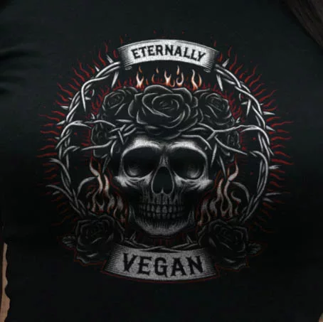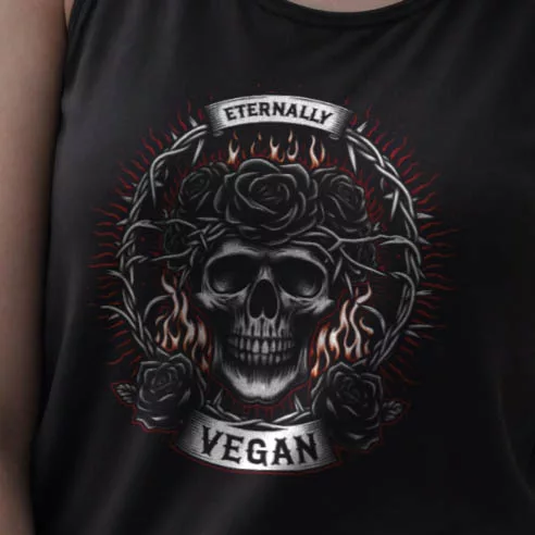 Dieses Tank-Top ist perfekt für den Sommer, für Festivals oder als lässiges Outfit, das Aufmerksamkeit erregt. Es spricht nicht nur die Fans des dunklen, gotischen Stils an, sondern auch jene, die ihre Überzeugungen durch ihre Kleidung ausdrücken möchten. Das „Eternally Vegan“ Tank-Top ist ein Ausdruck von Individualität und einer starken, ethischen Haltung.
