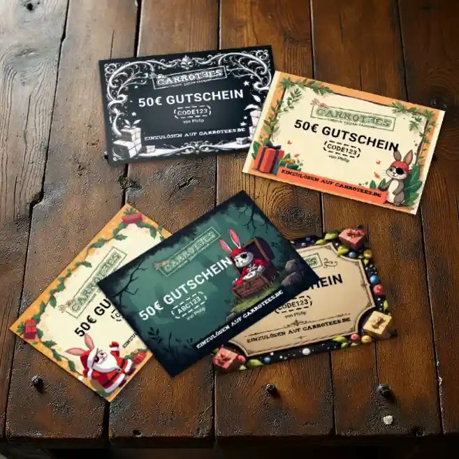Du suchst nach einem Geschenk, das gleichzeitig persönlich und flexibel ist? Mit unserem Geschenkgutschein liegst du immer richtig! Ob zum Geburtstag, Weihnachten, für Gruselfans oder kleine Piraten – wir bieten das perfekte Design für jeden Anlass. Wähle aus unseren liebevoll gestalteten Motiven, darunter verspielte Piratenhasen, bunte Geschenkpakete, festliche Weihnachtsdesigns und geheimnisvolle Grusel-Themen. So verschenkst du nicht nur einen Gutschein, sondern ein echtes Erlebnis!