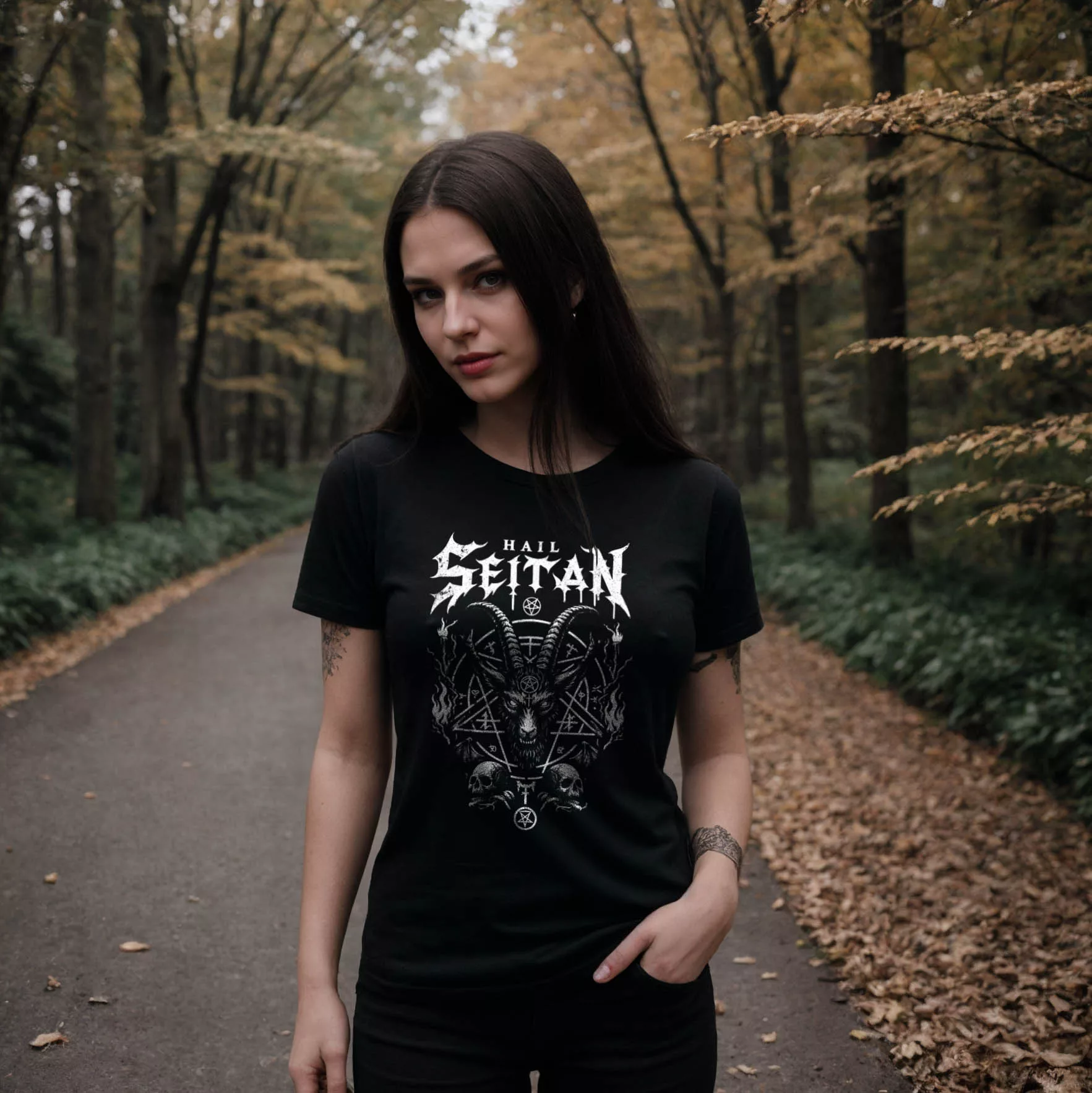 Das “Hail Seitan” Unisex Bio T-Shirt ist die perfekte Wahl für alle, die ihre Liebe zu düsterer Musik mit einem umweltbewussten Lebensstil verbinden möchten. Dieses T-Shirt, gefertigt aus biologischen Materialien, spricht nicht nur die Fans des Black Metals an, sondern auch diejenigen, die Wert auf Nachhaltigkeit legen.
