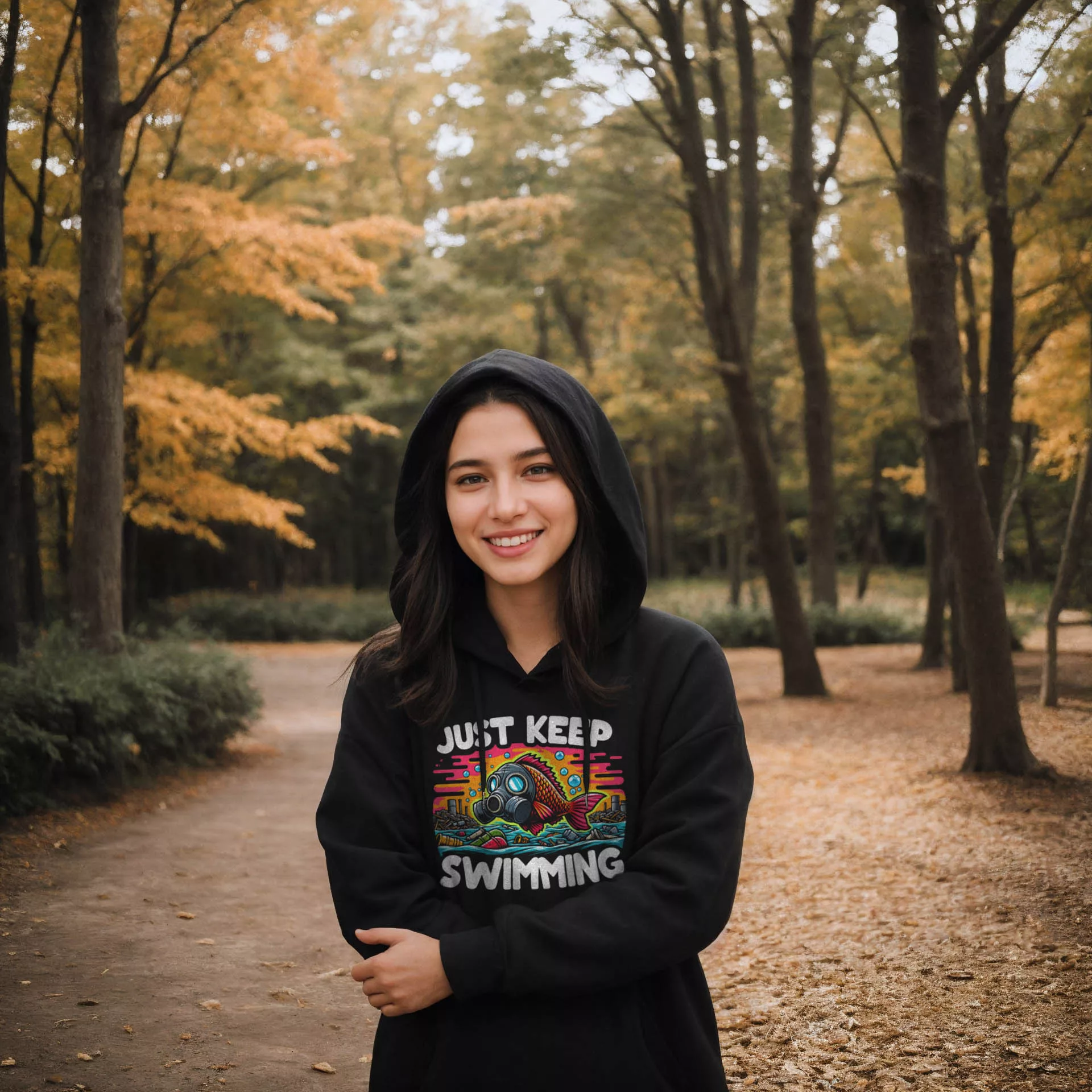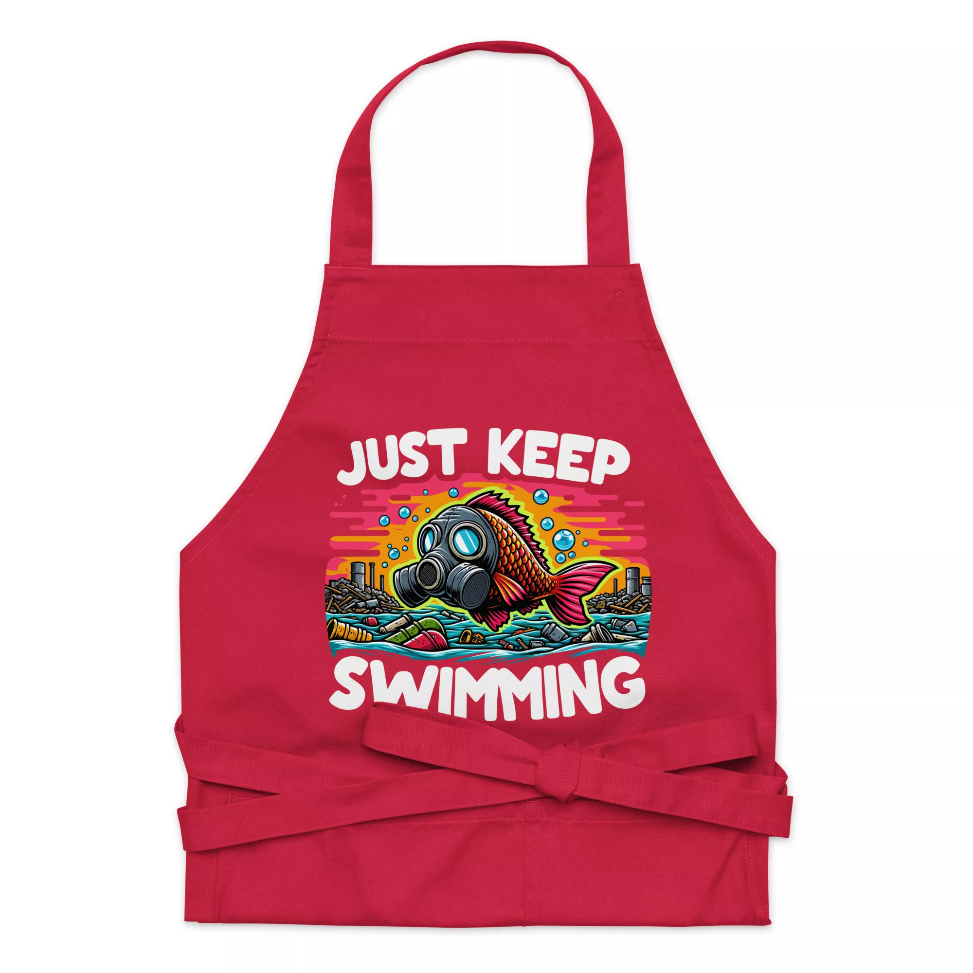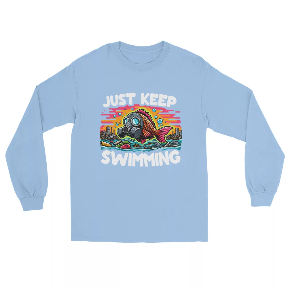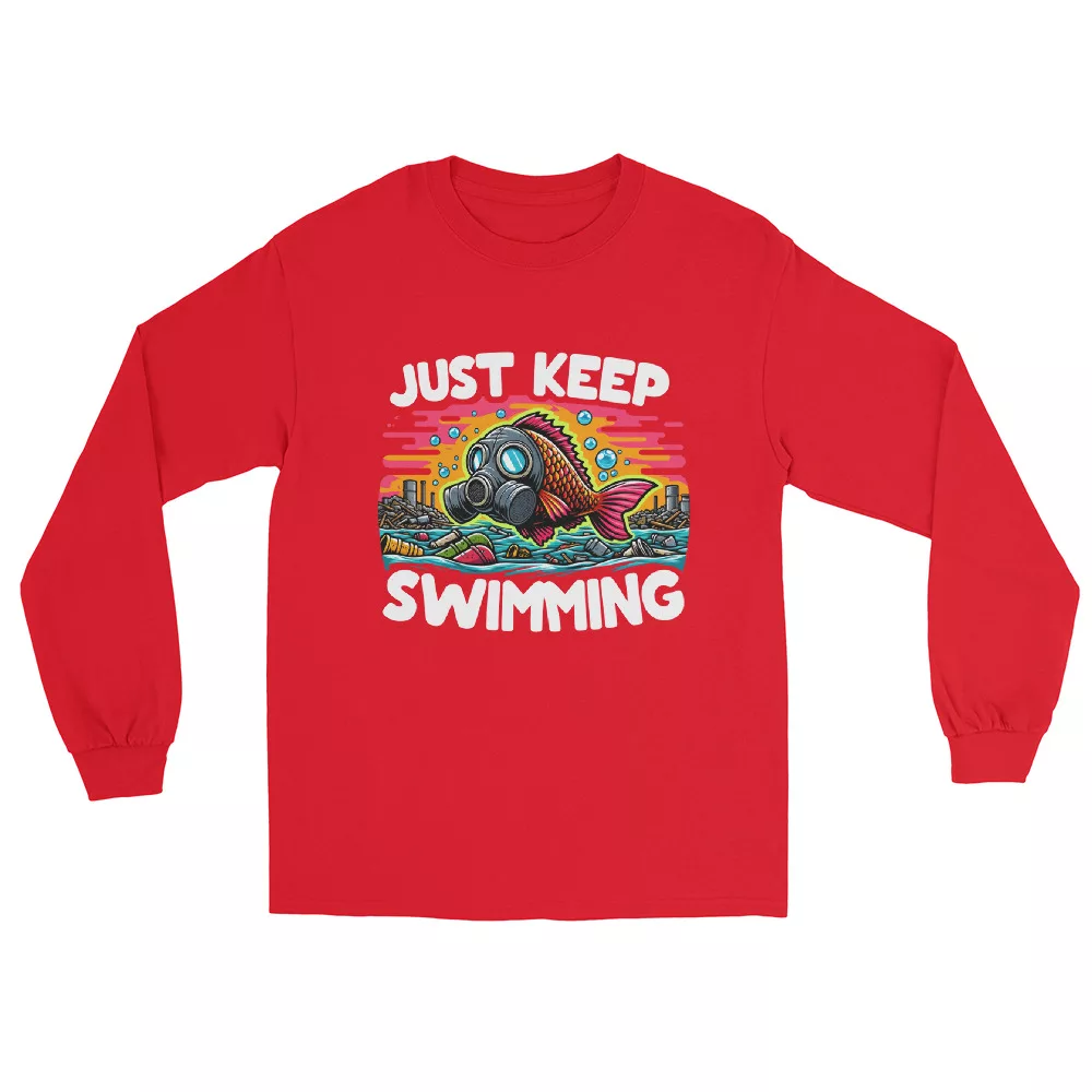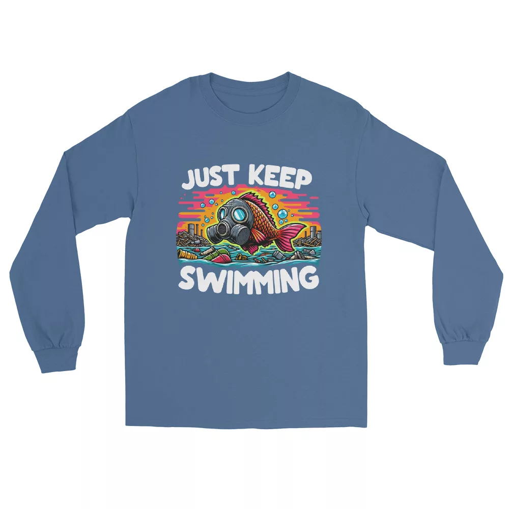 Das Unisex Bio T-Shirt „Just Keep Swimming“ ist nicht nur ein modisches Statement, sondern auch ein Aufruf zum Handeln gegen die Umweltverschmutzung. Auf diesem Shirt prangt das Bild eines Fisches mit einer Gasmaske, der sich durch stark verschmutztes Wasser bewegt, umgeben von Abfall und Industrierückständen. Dieses Design soll nicht nur provozieren, sondern auch zum Nachdenken anregen über die Auswirkungen unserer Handlungen auf die Meeresumwelt und deren Bewohner.