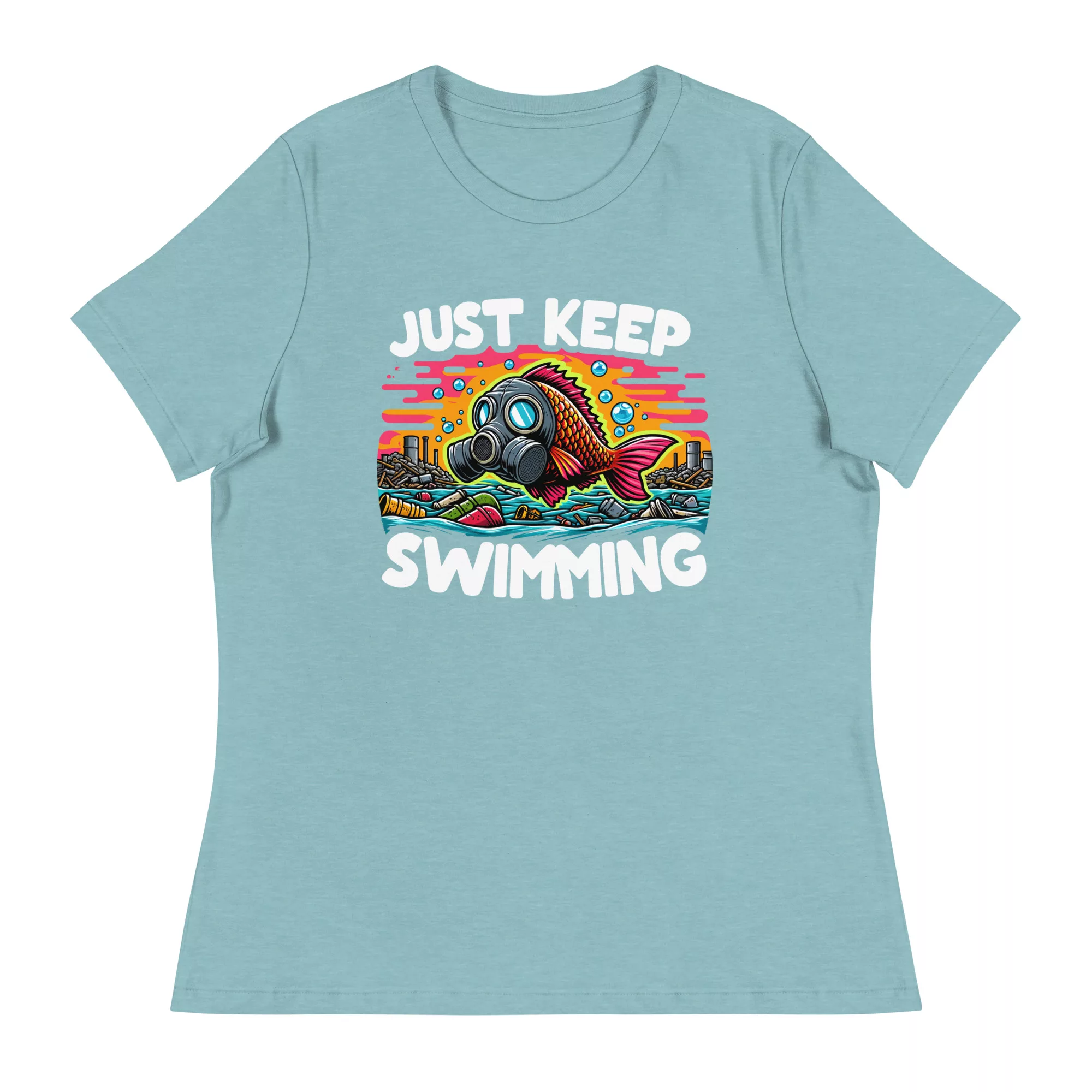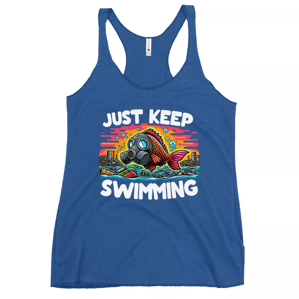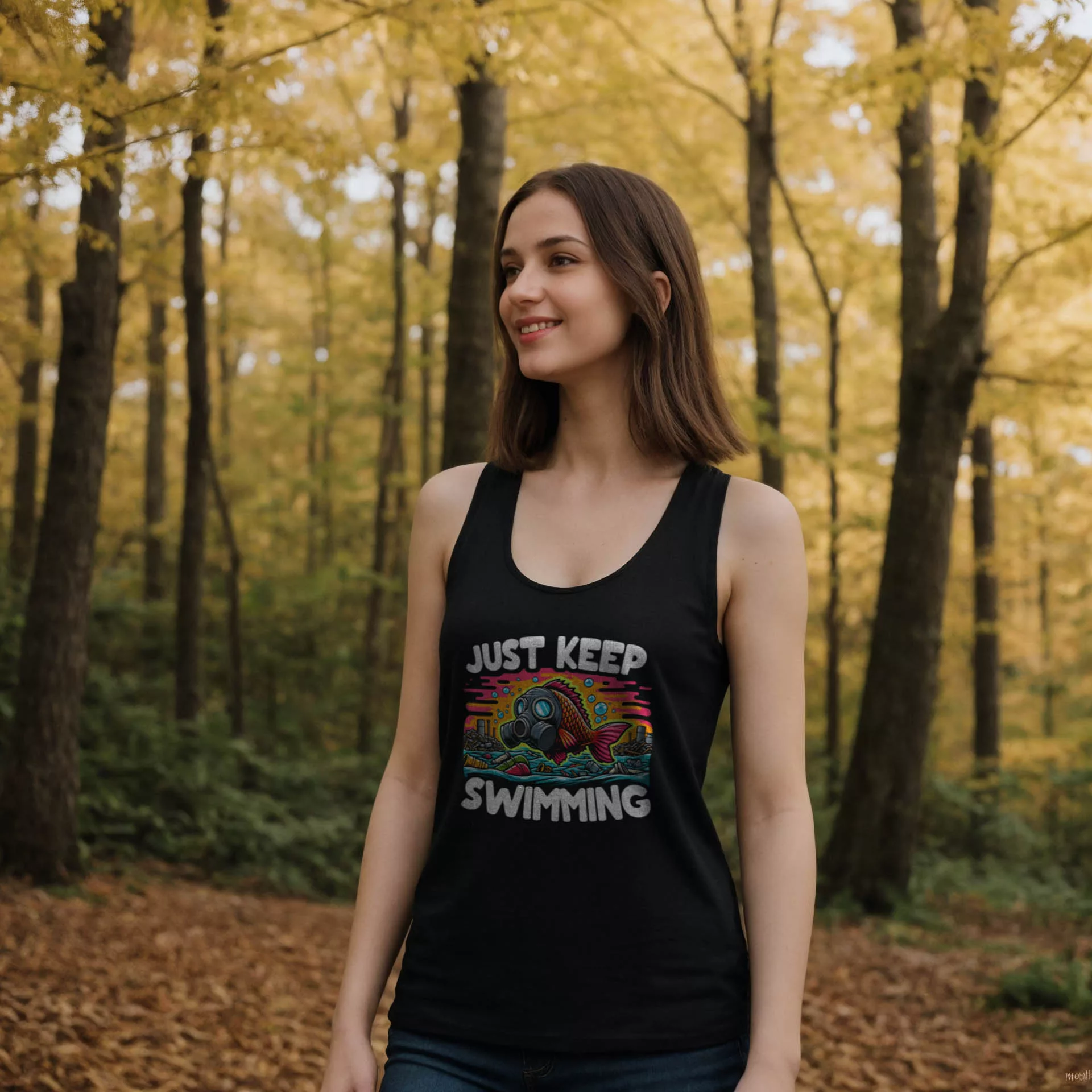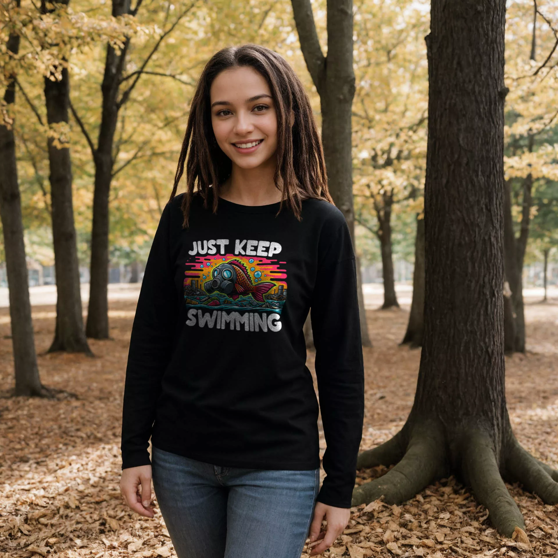 Das Unisex Bio T-Shirt „Just Keep Swimming“ ist nicht nur ein modisches Statement, sondern auch ein Aufruf zum Handeln gegen die Umweltverschmutzung. Auf diesem Shirt prangt das Bild eines Fisches mit einer Gasmaske, der sich durch stark verschmutztes Wasser bewegt, umgeben von Abfall und Industrierückständen. Dieses Design soll nicht nur provozieren, sondern auch zum Nachdenken anregen über die Auswirkungen unserer Handlungen auf die Meeresumwelt und deren Bewohner.