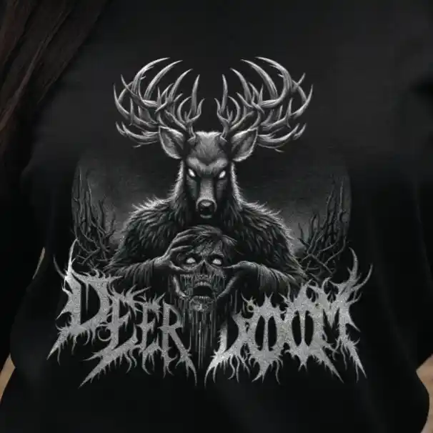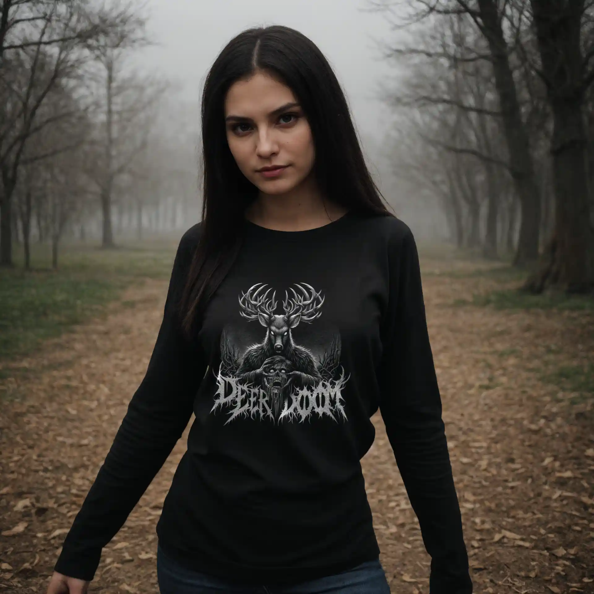 Das Deer’s Doom Longsleeve T-Shirt ist eine Fusion aus düsterer Ästhetik und tiefgreifender Botschaft, die perfekt für die kälteren Tage oder die langen Nächte auf einem Metal-Konzert geeignet ist. Dieses Design, das einen bedrohlichen Rehbock zeigt, der stolz einen menschlichen Schädel präsentiert, ist eine kraftvolle Erklärung gegen die Jagd und für den Respekt vor der Natur.
