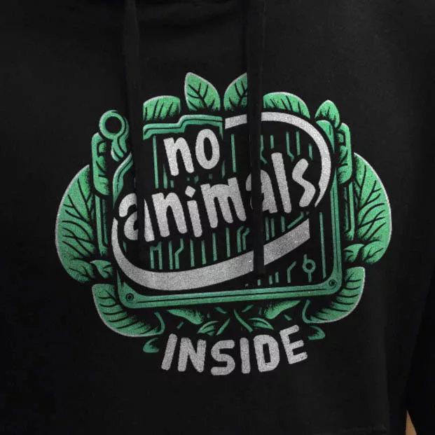 Gefertigt aus hochwertigen Materialien, bietet dieses Longsleeve T-Shirt nicht nur einen hohen Tragekomfort, sondern ist auch ein Bekenntnis zu nachhaltiger Mode. Das „No Animals Inside“-Design mit seiner Kombination aus technischen und natürlichen Elementen macht es zu einem echten Hingucker und regt zum Nachdenken an.