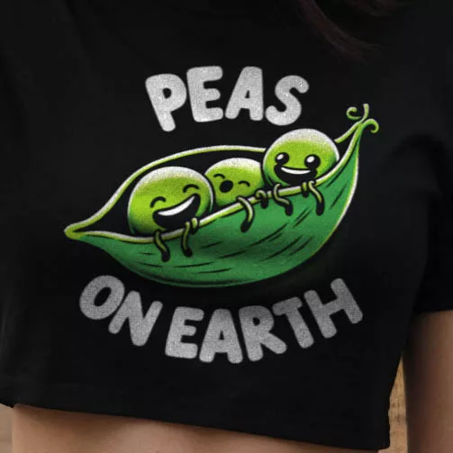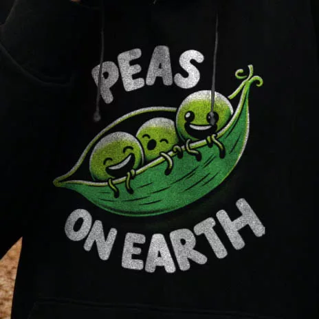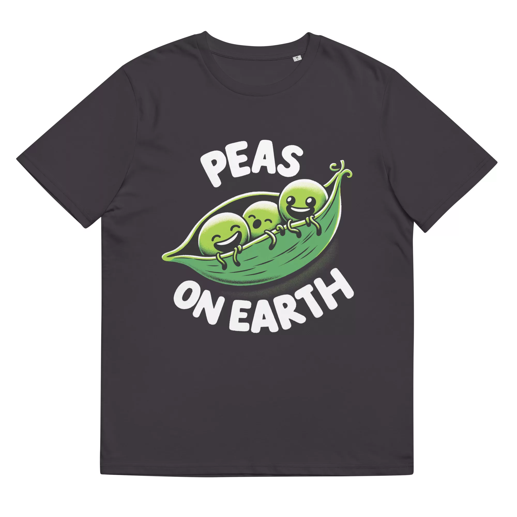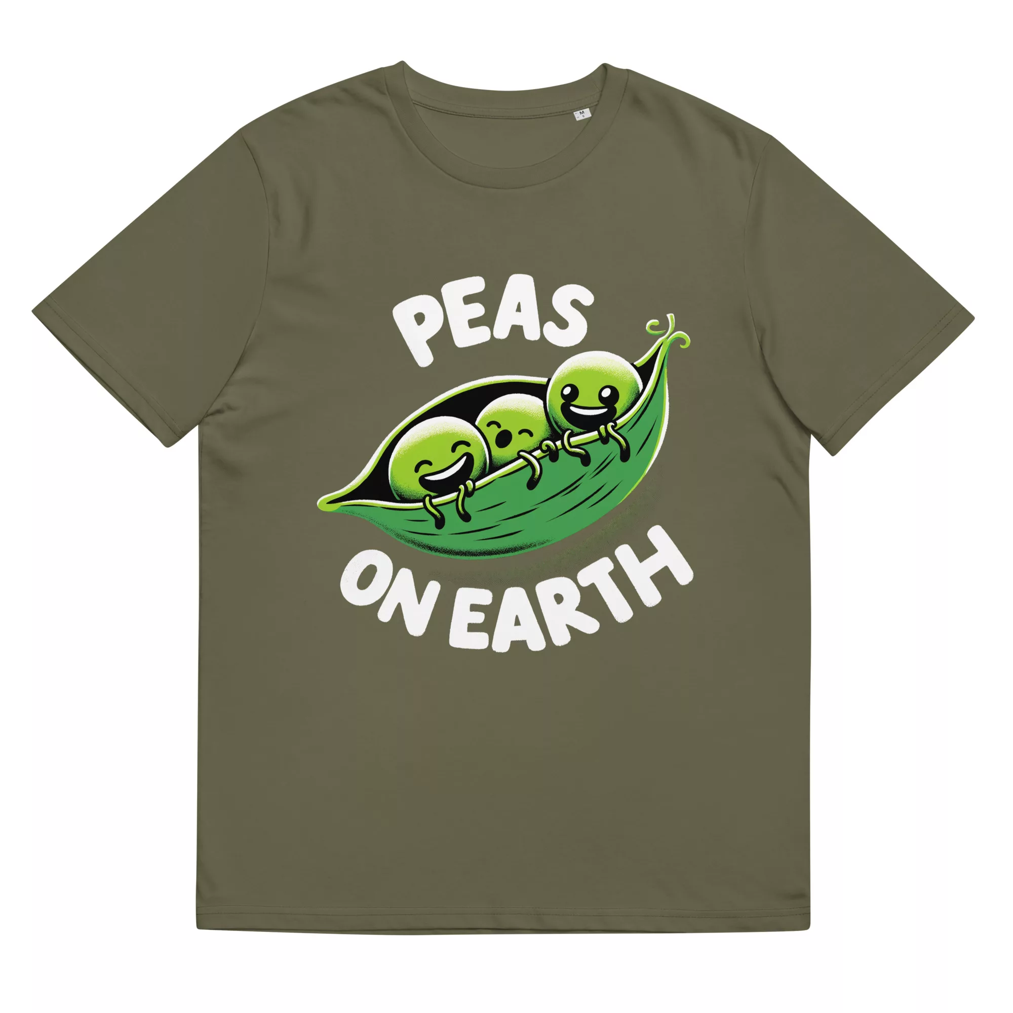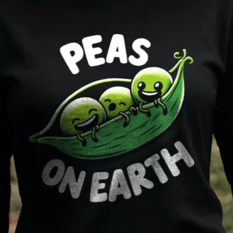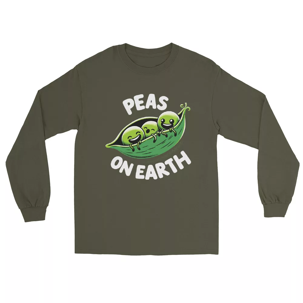 Das „Peas on Earth Longsleeve T-Shirt“ ist ein bezauberndes und nachdenkliches Kleidungsstück, das ideal für die kühleren Monate ist. Stell dir ein Langarmshirt vor, das nicht nur Wärme und Komfort bietet, sondern auch eine Botschaft von Frieden und Nachhaltigkeit. Drei glückliche Erbsen in ihrer Schote symbolisieren „Peas on Earth“, ein cleveres Wortspiel, das „Peace on Earth“ (Frieden auf Erden) nachahmt, und unterstreicht die Bedeutung von pflanzlichen Proteinen und einem veganen Lebensstil für die Förderung von Frieden.