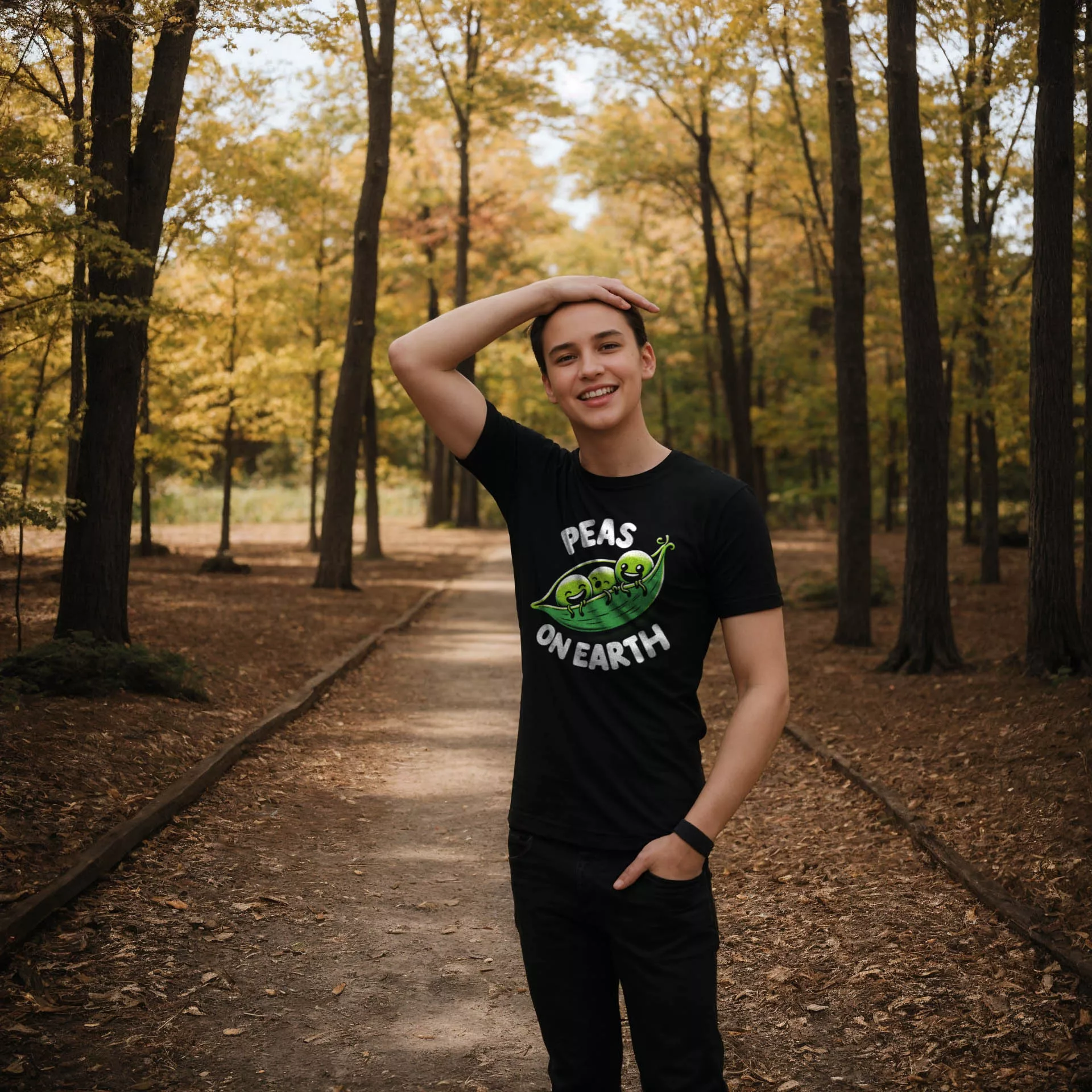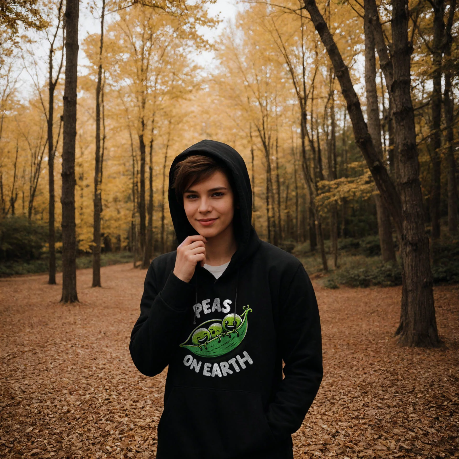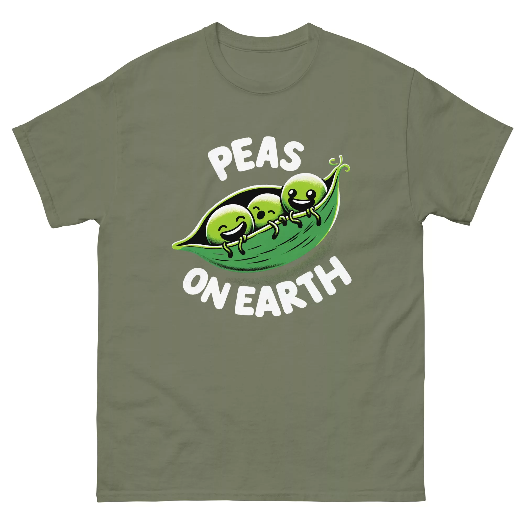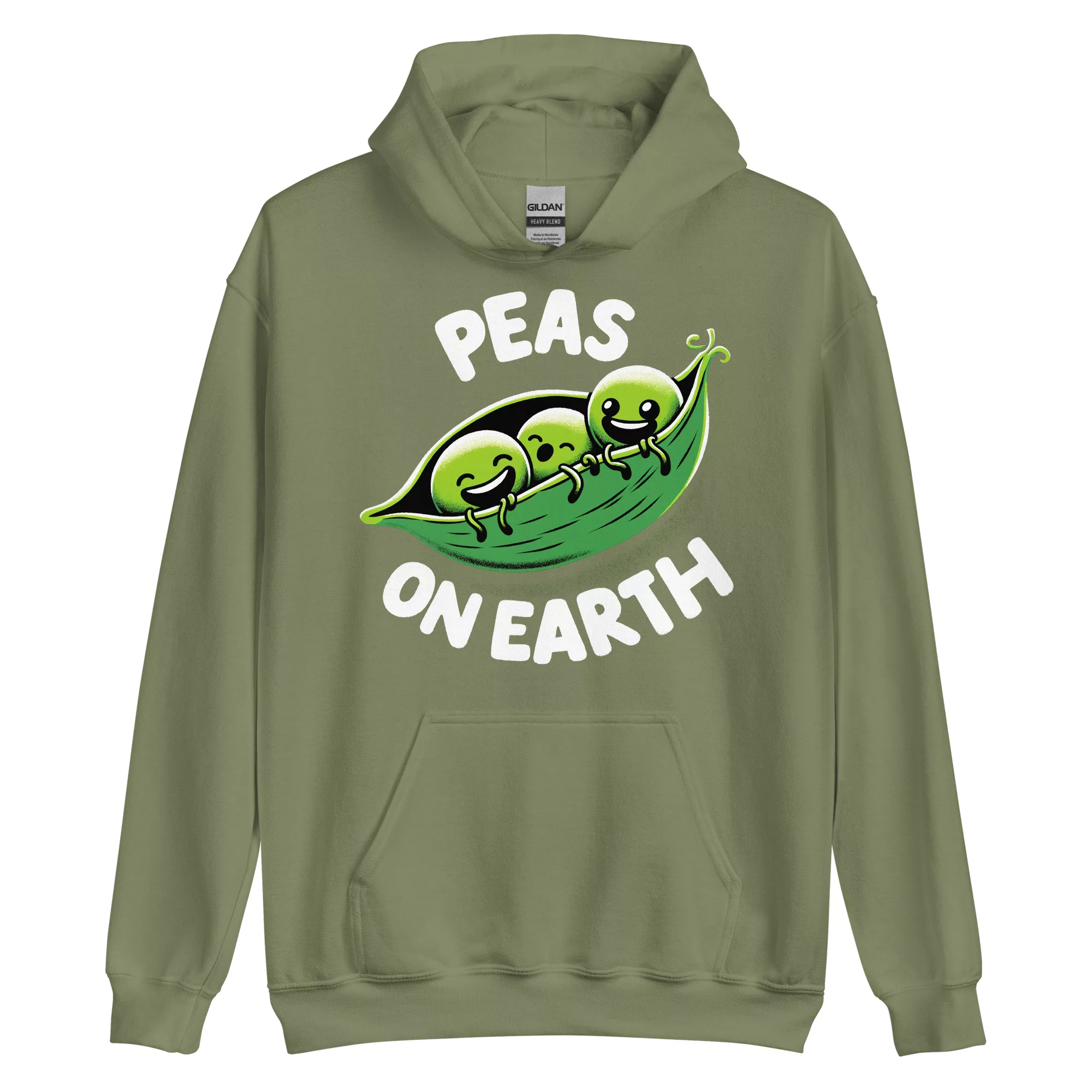 Das „Peas on Earth Longsleeve T-Shirt“ ist ein bezauberndes und nachdenkliches Kleidungsstück, das ideal für die kühleren Monate ist. Stell dir ein Langarmshirt vor, das nicht nur Wärme und Komfort bietet, sondern auch eine Botschaft von Frieden und Nachhaltigkeit. Drei glückliche Erbsen in ihrer Schote symbolisieren „Peas on Earth“, ein cleveres Wortspiel, das „Peace on Earth“ (Frieden auf Erden) nachahmt, und unterstreicht die Bedeutung von pflanzlichen Proteinen und einem veganen Lebensstil für die Förderung von Frieden.