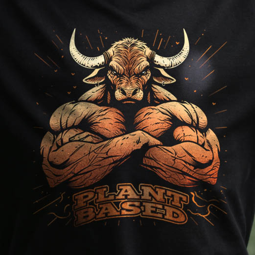 Dieses Shirt eignet sich ideal für alle Fitnessbegeisterten, die ihre Überzeugung für eine pflanzliche Ernährung im Fitnessstudio, beim Sport oder im Alltag mit Stolz nach außen tragen wollen. Der kraftvolle Stier steht für Body Positivity, Stärke und Selbstbewusstsein und zeigt, dass vegane Ernährung genauso leistungsfähig und proteinreich ist wie jede andere.