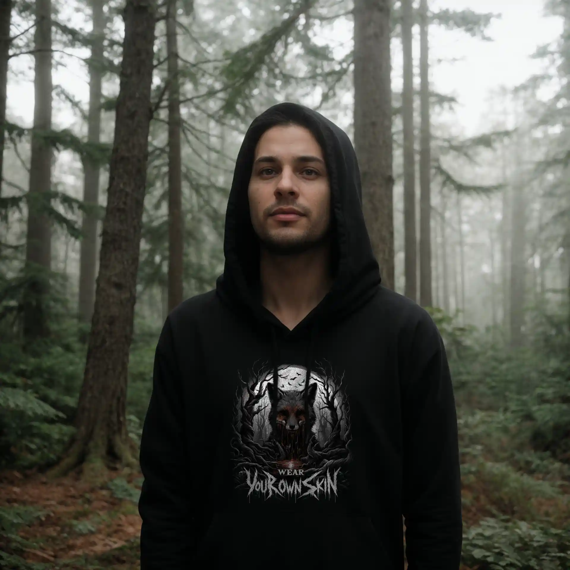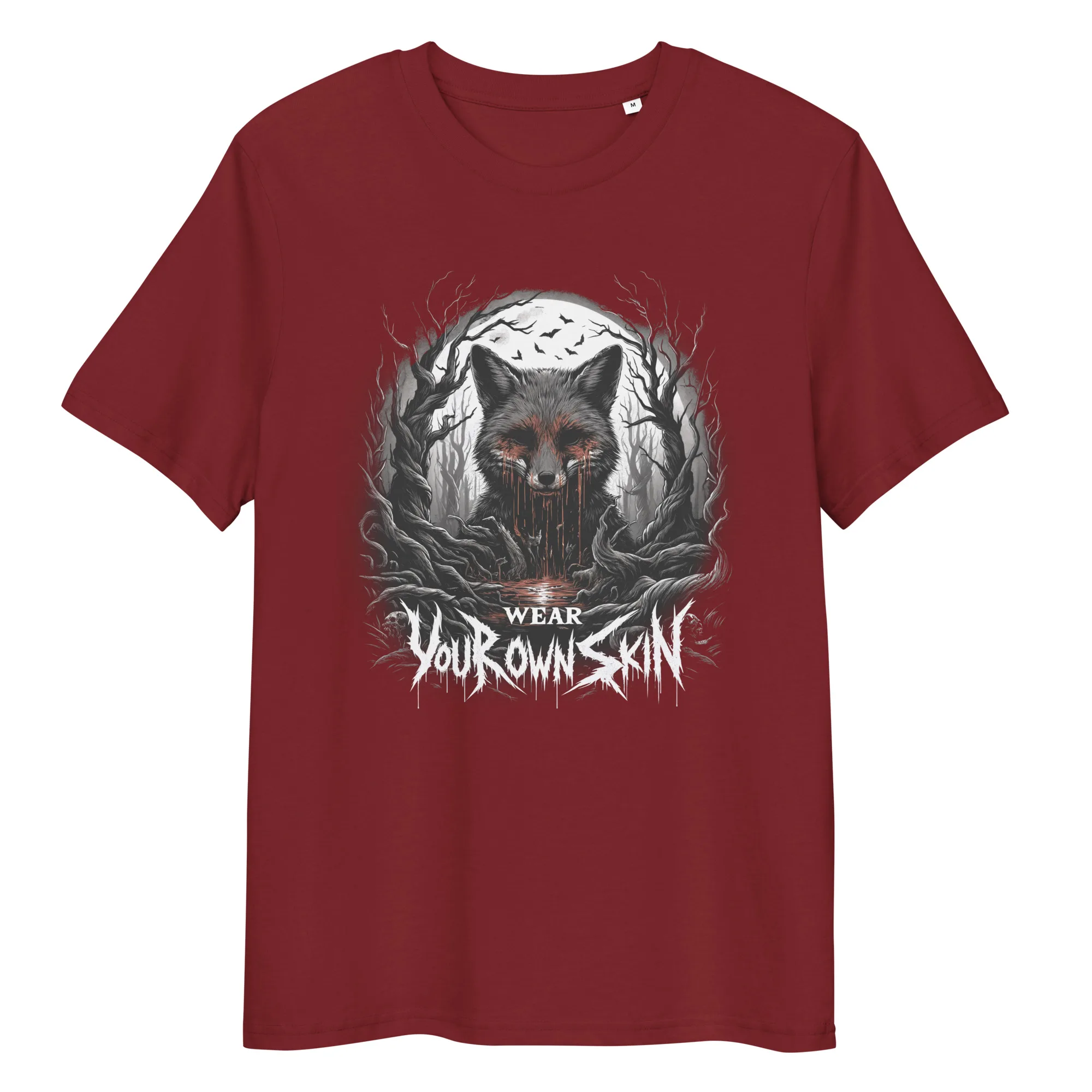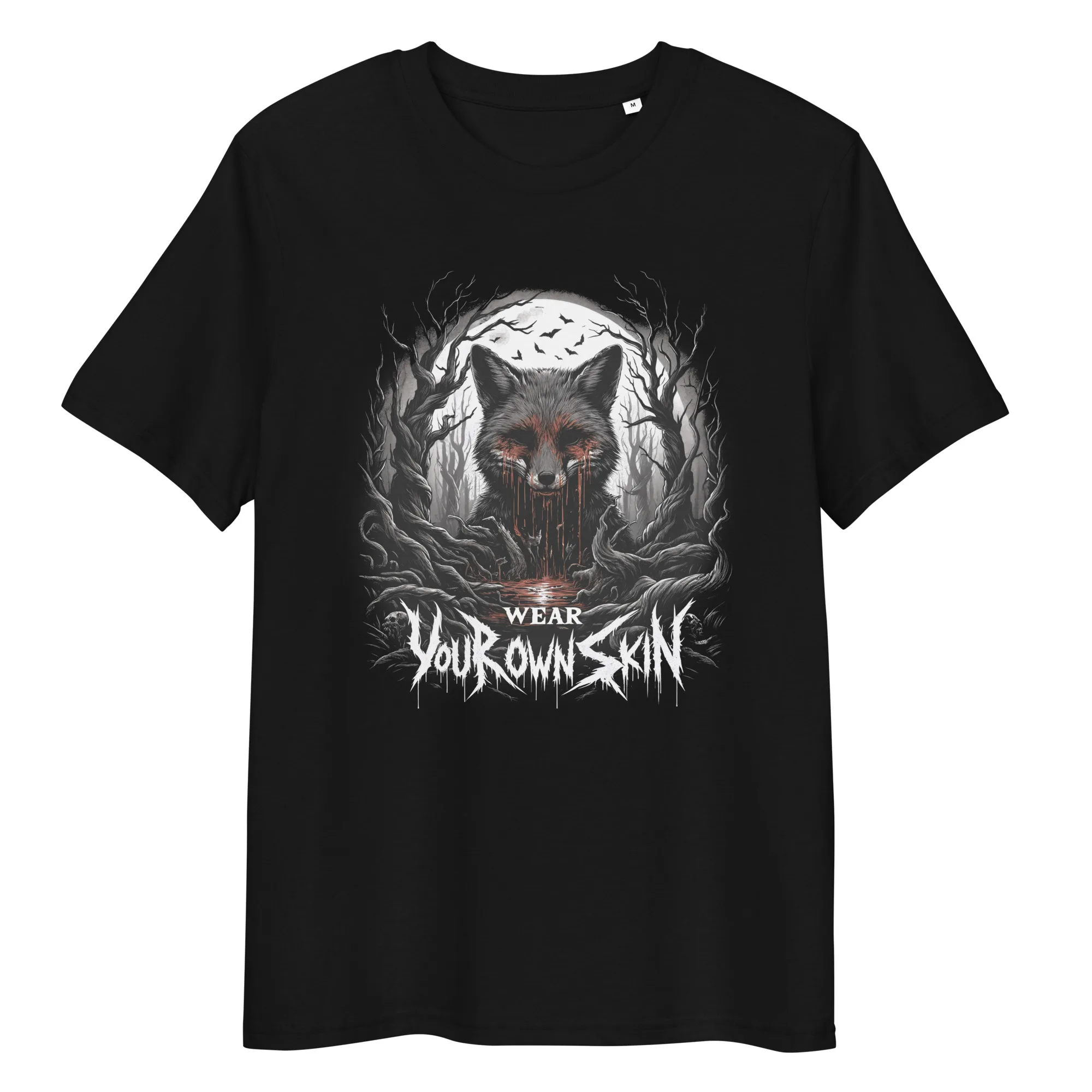 Das „Wear Your Own Skin“ Longsleeve T-Shirt ist mehr als nur ein Kleidungsstück; es ist eine Botschaft, die tief in den Wurzeln des Gothic und Horror Stils verankert ist. Mit einem einzigartigen Design, das einen blutigen Fuchs in einem düsteren Wald zeigt, lädt dieses Longsleeve jeden dazu ein, über die Bedeutung hinter der Wahl unserer Kleidung nachzudenken. Es ist eine stilvolle Erinnerung daran, die Haut, die wir tragen, bewusst zu wählen.