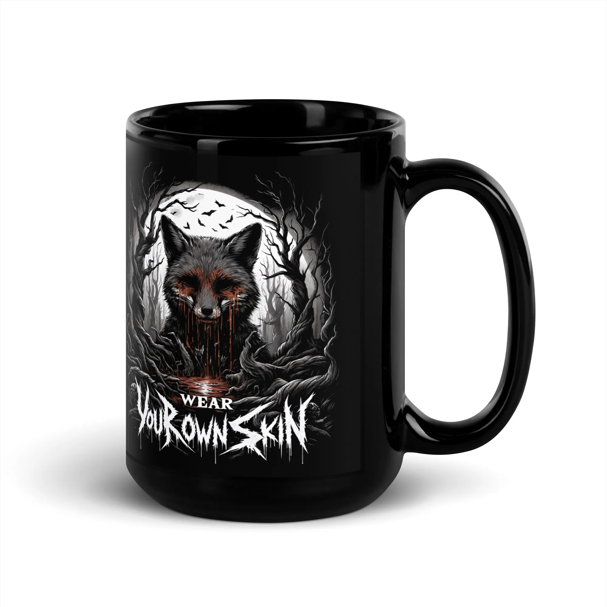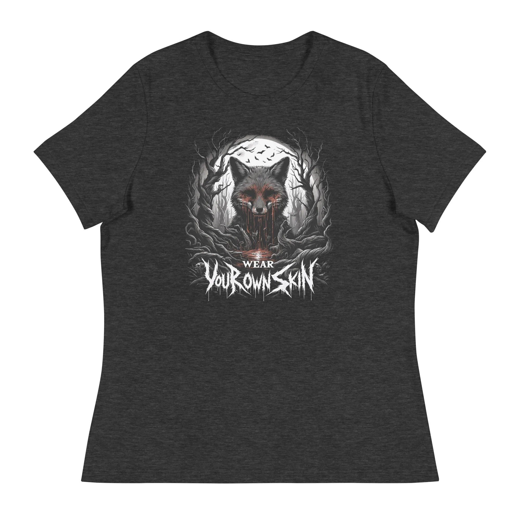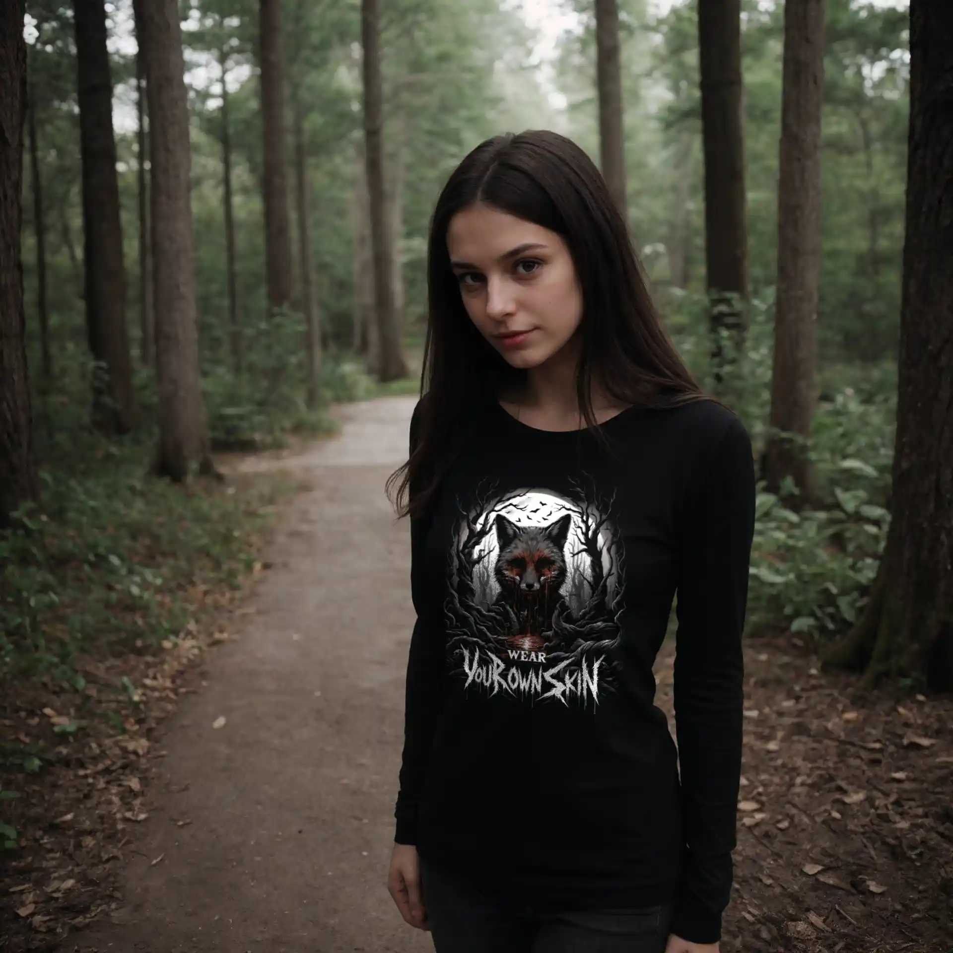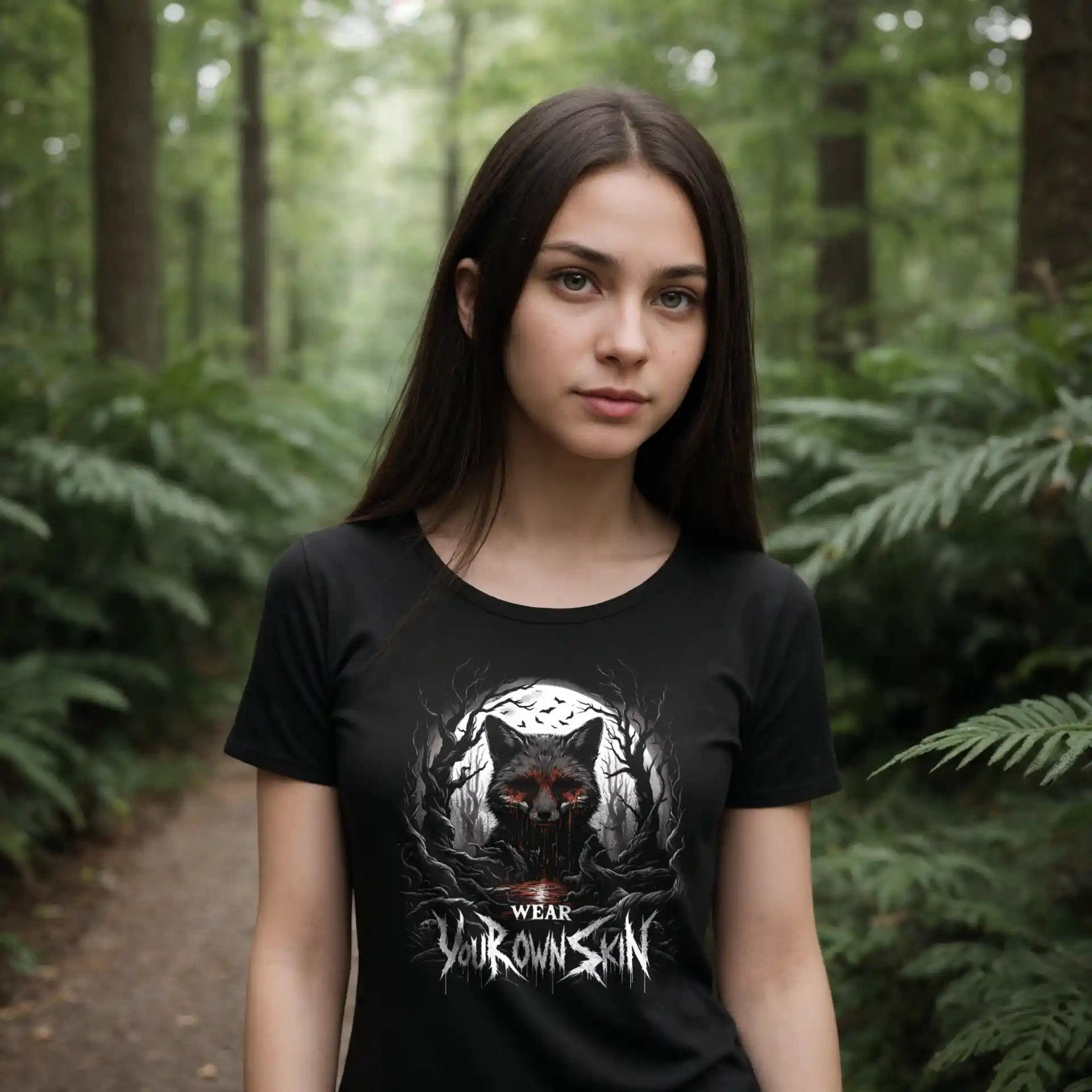 Das „Wear Your Own Skin“ Longsleeve T-Shirt ist mehr als nur ein Kleidungsstück; es ist eine Botschaft, die tief in den Wurzeln des Gothic und Horror Stils verankert ist. Mit einem einzigartigen Design, das einen blutigen Fuchs in einem düsteren Wald zeigt, lädt dieses Longsleeve jeden dazu ein, über die Bedeutung hinter der Wahl unserer Kleidung nachzudenken. Es ist eine stilvolle Erinnerung daran, die Haut, die wir tragen, bewusst zu wählen.