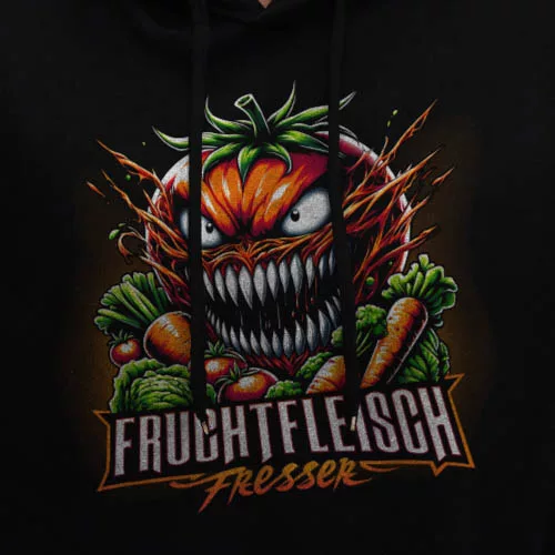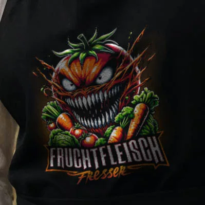 Das „Fruchtfleischfresser Unisex T-Shirt“ kombiniert Humor und Stil in einem einzigartigen Kleidungsstück. Es zeigt eine furchteinflößende Tomate mit spitzen Zähnen, umgeben von anderen Gemüsesorten, und spielt so auf den Begriff „Fruchtfleischfresser“ an. Dieses Design ist perfekt für alle, die ihre Vorliebe für Gemüse auf eine lustige und originelle Weise ausdrücken möchten.