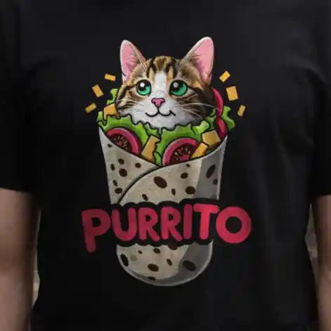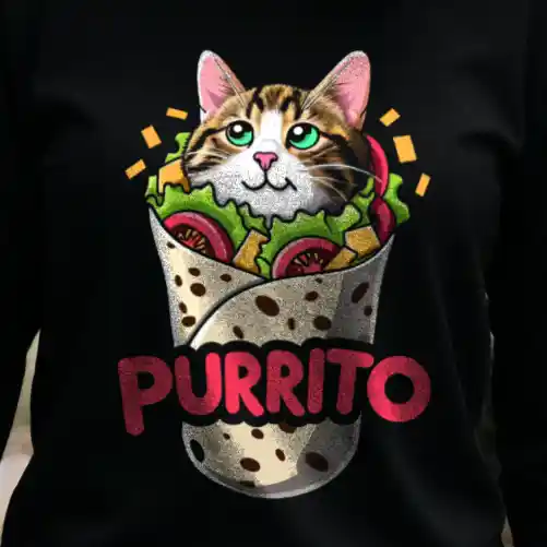 Ideal für jeden, der Mode mit Bedeutung sucht. Das Purrito T-Shirt ist mehr als nur ein trendiges Kleidungsstück; es ist ein Statement gegen Spezieszismus und ein Aufruf zum Nachdenken über Gleichheit und Mitgefühl für alle Lebewesen. Ob du es in der Stadt trägst, bei einem Treffen mit Freunden oder bei einem entspannten Tag zu Hause, dieses Shirt wird sicherlich Aufmerksamkeit erregen und könnte der Beginn interessanter Gespräche sein.