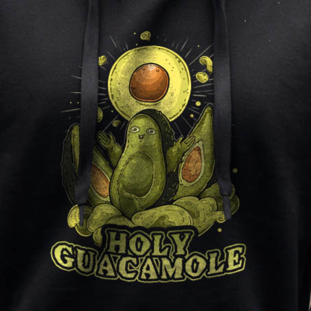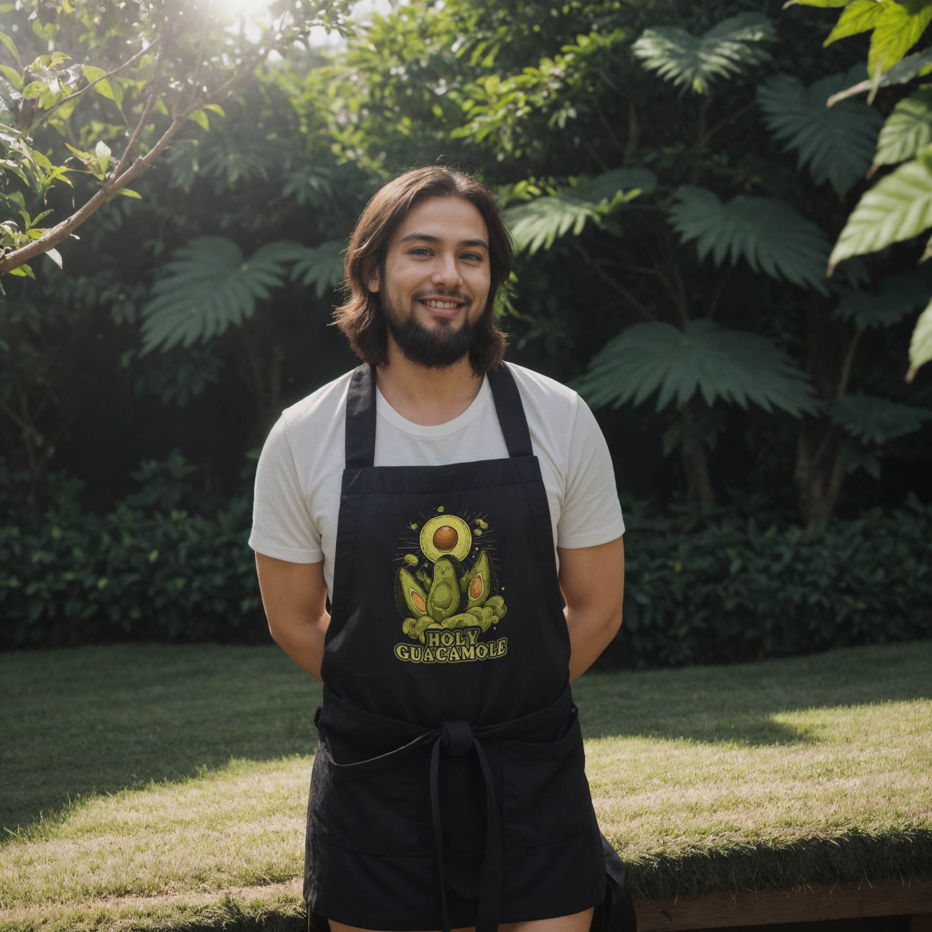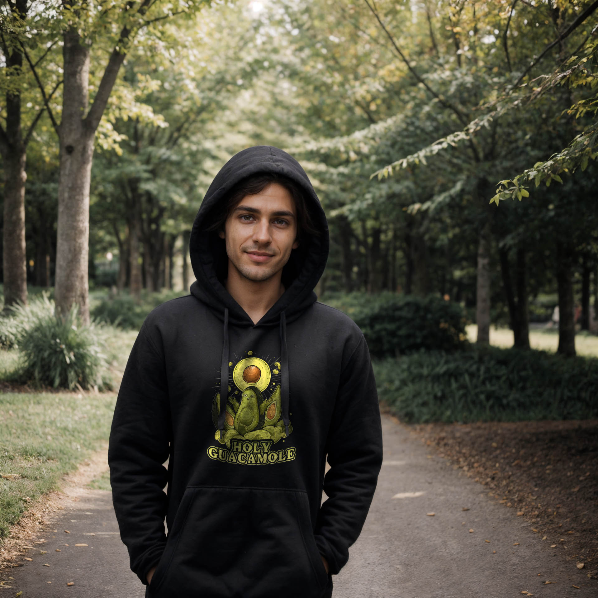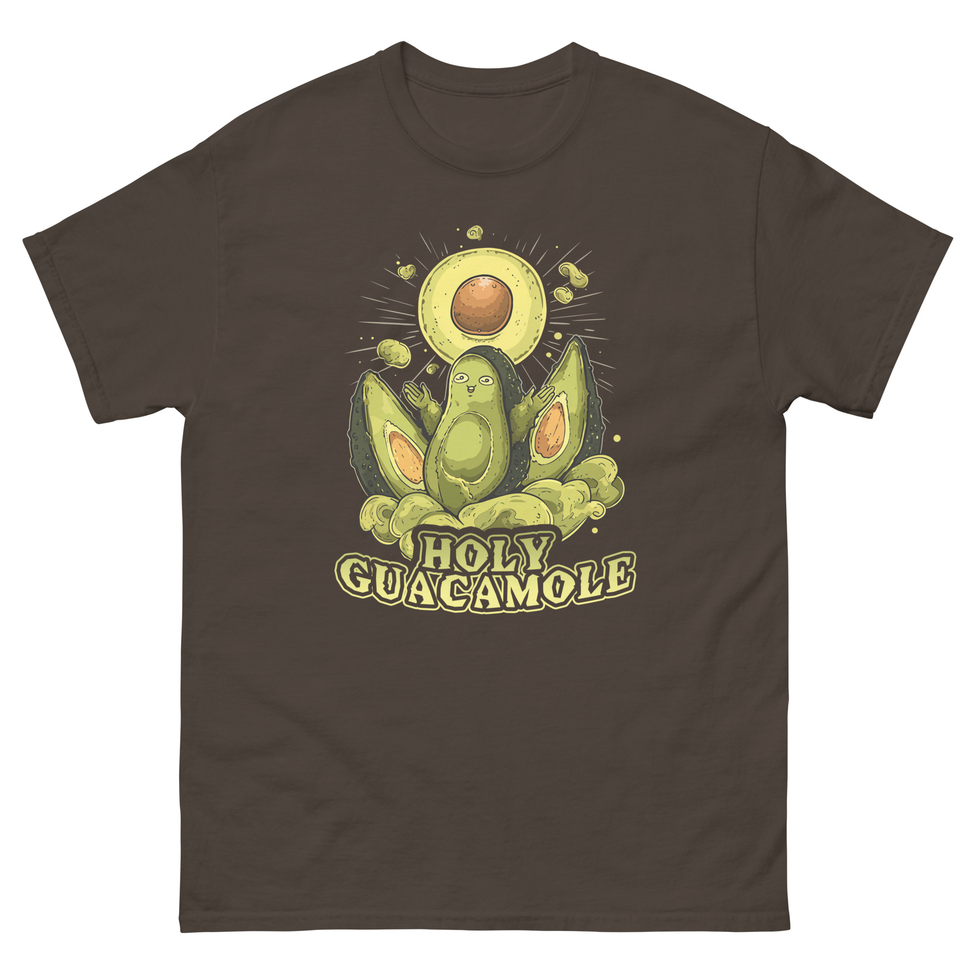 Mit dem markanten „Holy Guacamole“ Design auf dem T-Shirt setzt du ein Statement für einen nachhaltigen Lebensstil und zeigst gleichzeitig deine Begeisterung für leckeres und gesundes Essen. Die Avocado, die in prophetischer Geste über einem Untergrund aus köstlicher Guacamole schwebt, verleiht dem Design eine spielerische und dennoch aussagekräftige Note. Die grünen und braunen Farbtöne fangen die Essenz der Natur ein und spiegeln deine Verbindung zur Umwelt wider.