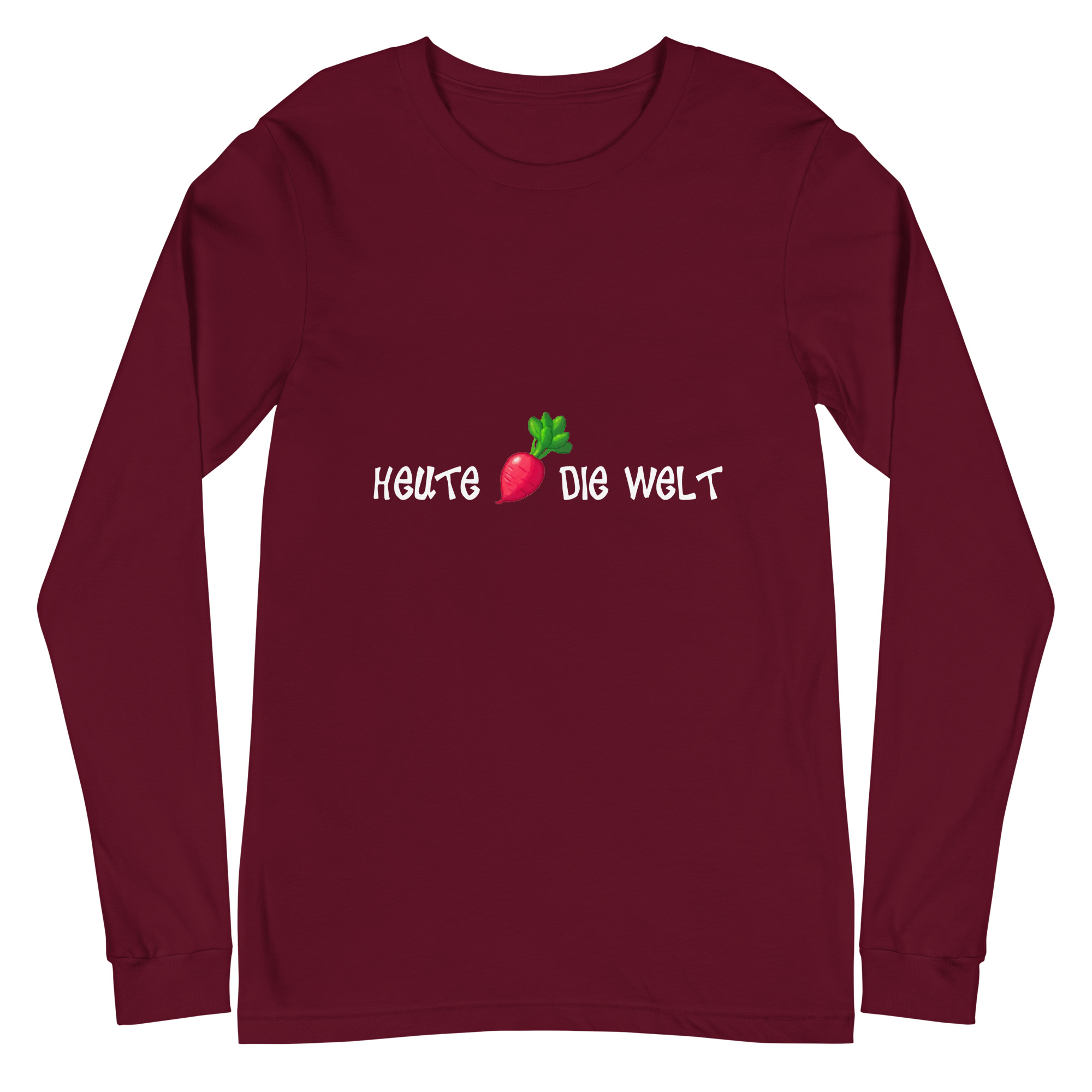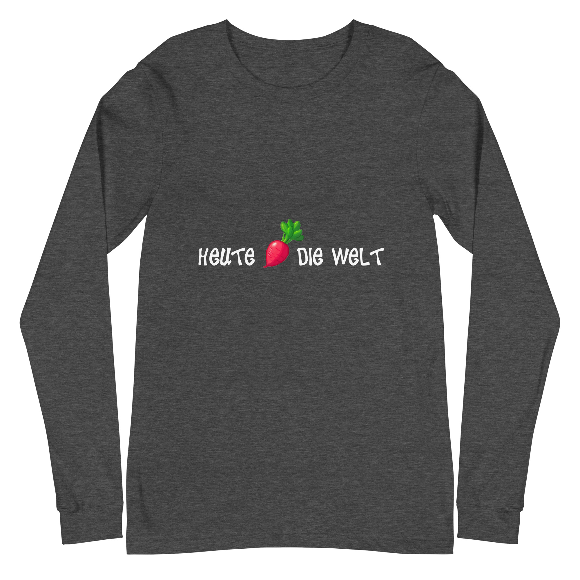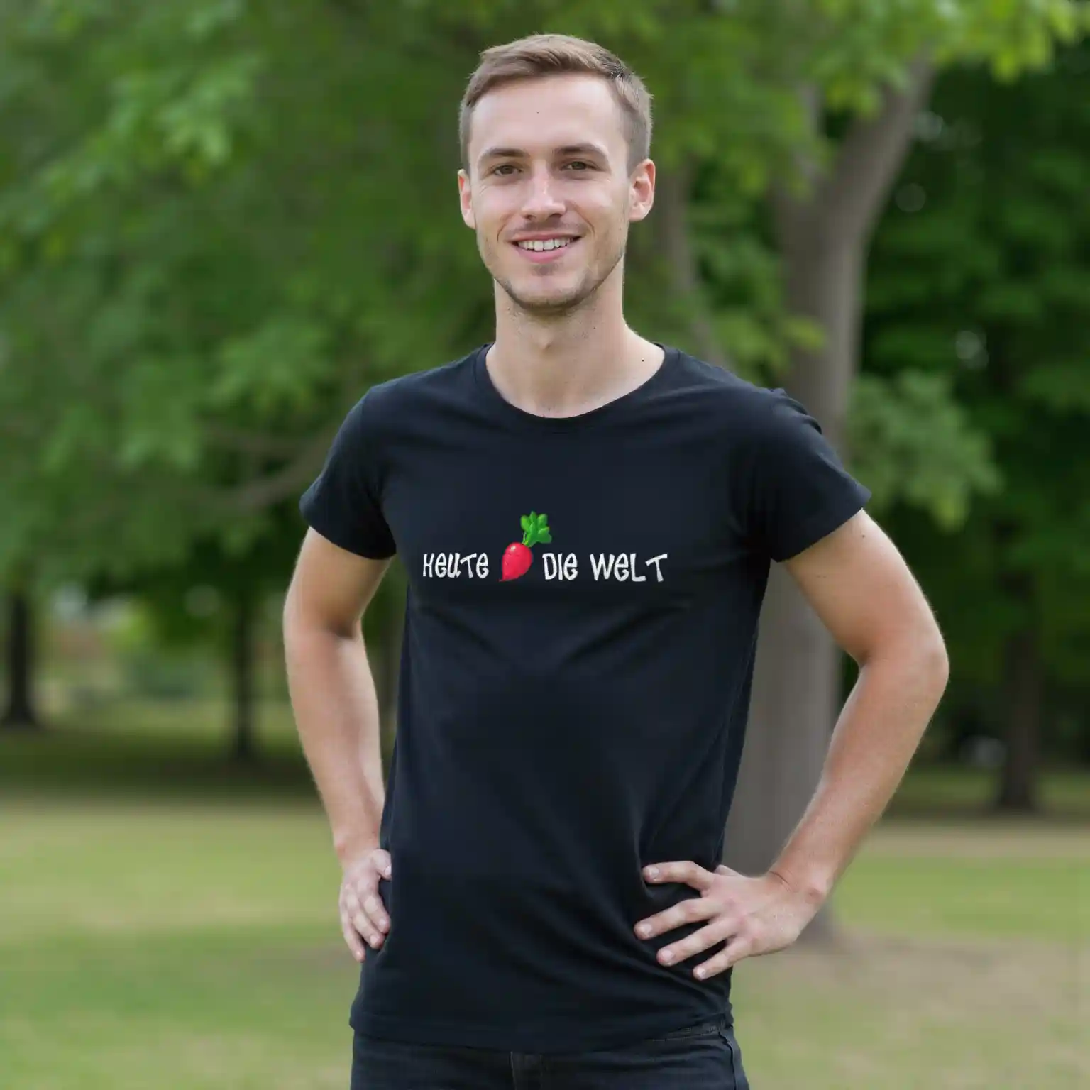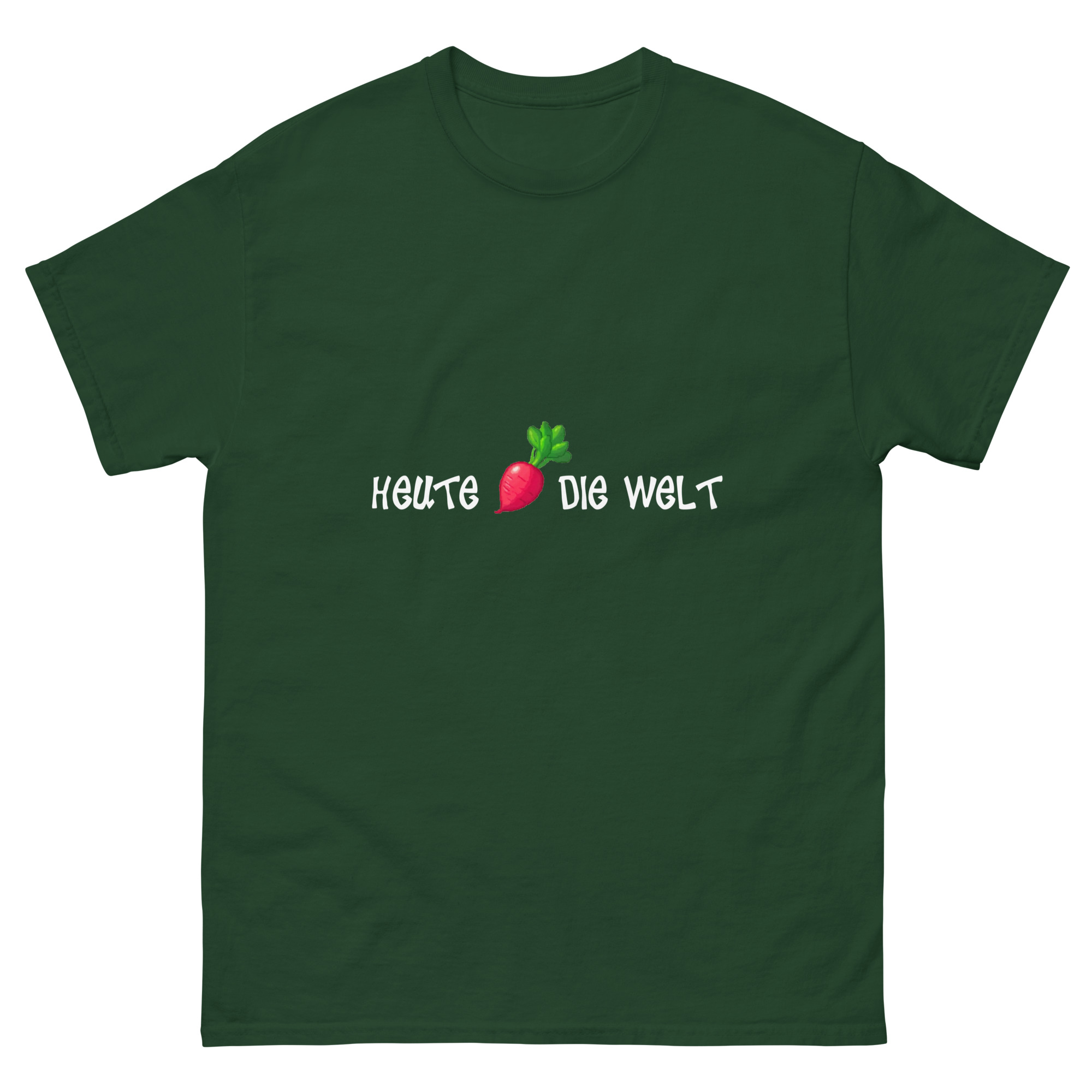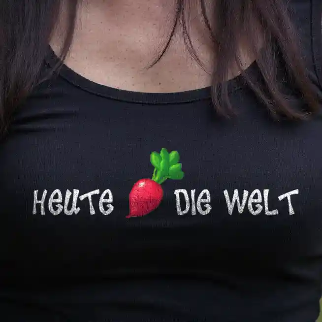 Mach die Welt besser, einen Tag nach dem anderen – und das mit deinem neuen Lieblingsshirt! Unser Unisex T-Shirt mit dem Design „Heute Rettich die Welt“ kombiniert Humor und Style, um ein wichtiges Statement zu setzen. Der clevere Wortwitz mit „Rettich“ (klingt wie „rette ich“) zeigt, wie witzig Nachhaltigkeit und Veganismus sein können. Denn jeder vegane Tag rettet ein Stückchen die Welt – und mit diesem Shirt machst du das klar.